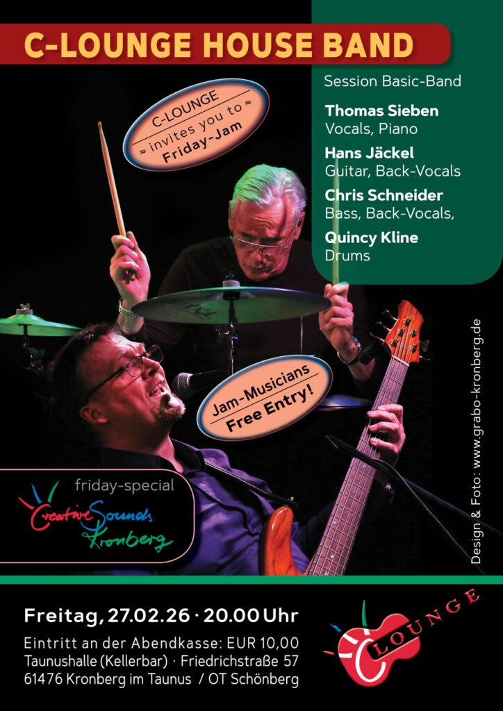 Jam-Musicians, die beabsichtigen, sich aktiv an der Session zu beteiligen (bitte an der Eintrittskasse melden) – Eintritt frei